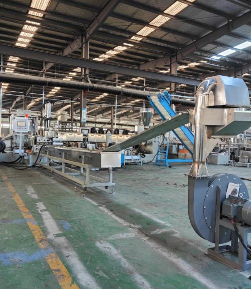 一、系統(tǒng)機(jī)組技術(shù)參數(shù)Ⅰ、機(jī)器顏色:主機(jī)為公司標(biāo)色;電柜為電腦色Ⅱ、造粒工藝:單螺桿喂料機(jī)——-JDL-180單螺桿擠出機(jī)---—液壓板式換網(wǎng)——拉條機(jī)頭-----5米不銹鋼水槽-------吹干機(jī)-----龍門切粒機(jī)------2.5米不銹鋼振動(dòng)篩-----產(chǎn)品料倉(cāng)----25公斤自動(dòng)稱重系統(tǒng)-------采用:PLC控制 Ⅲ、作業(yè)物料:PP破碎料 產(chǎn) 量:500-600公斤/小時(shí)(作業(yè)條件不同,產(chǎn)量稍有不同)